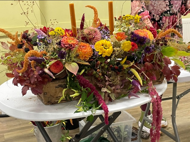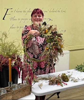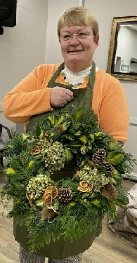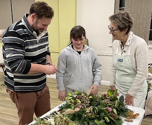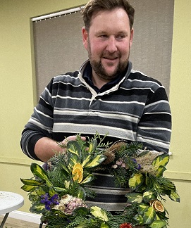 David Thresher, pictured here, helped members make lovely festive wreaths. The session